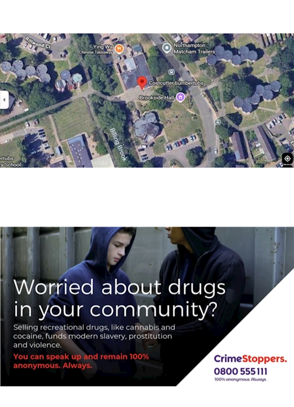 Are you concerned about ASB, DRUGS and DRUG DEALING in the area between Tonmead Road and Billing Brook Road leading to and from the local shops and children's play area.